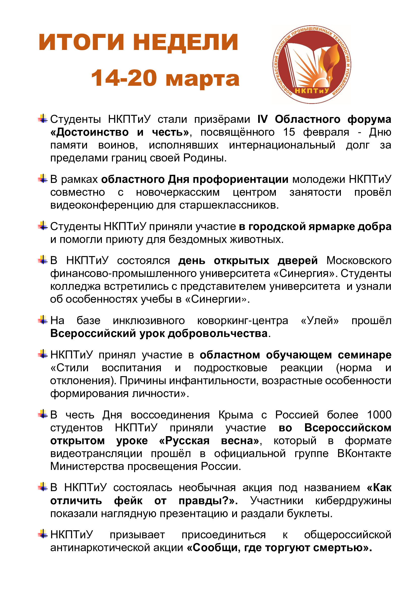 ГЛАВНЫЕ НОВОСТИ НЕДЕЛИ