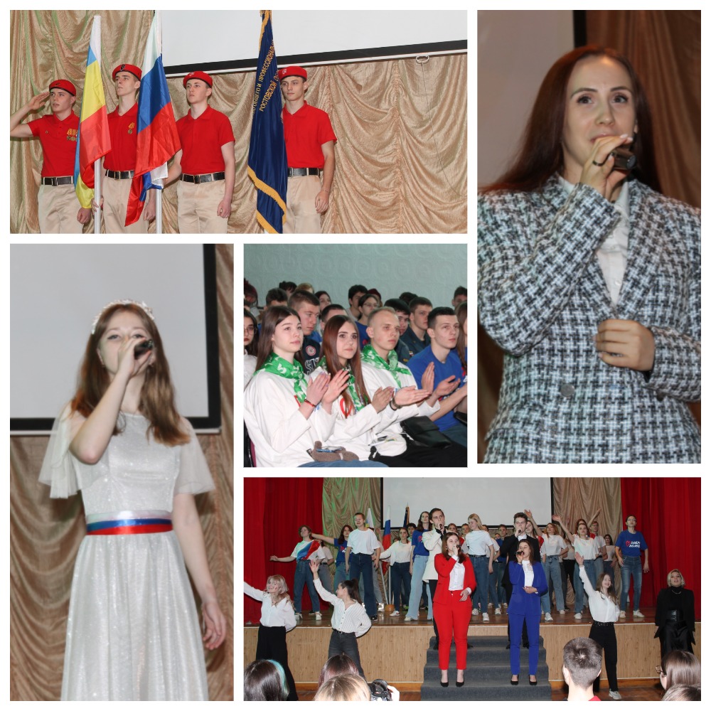3 февраля в актовом зале НКПТиУ собрались студенты, волонтёры и активисты колледжа. Под марш Преображенского полка юнармейцы торжественно внесли флаги России, Ростовской области и Новочеркасского колледжа промышленных технологий и управления. Участники и гости мероприятия посмотрели видеоролики о «Движении Первых» и первом съезде движения, который состоялся в декабре прошлого года.