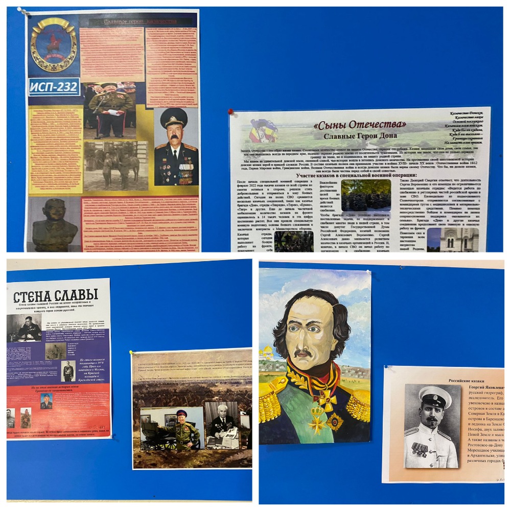 К этим знаменательным датам студенты-первокурсники НКПТиУ подготовили информационные листовки, посвящённые казакам Ростовской области. Советник директора по воспитанию Елена Зайцева совместно с активом обучающихся оформили выставку-стену славы «Сыны Отечества».