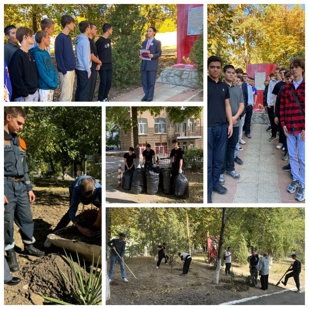 Волонтёры группы Мхт-241 под руководством классного руководителя Юлии Чумаковой провели активные работы по благоустройству памятника: вскопали клумбу и высадили цветы.