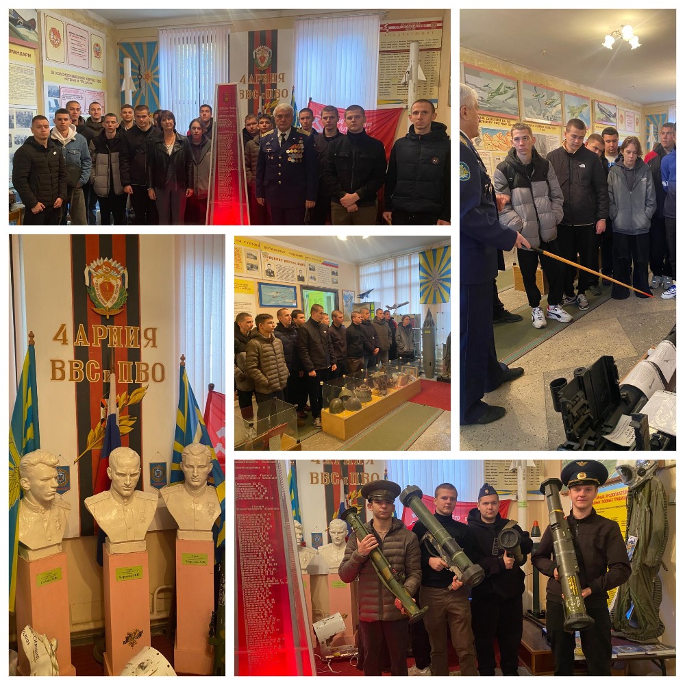 В музее ребят ждал увлекательный рассказ заведующего Виктора Потапова. Виктор Алексеевич поделился историей возникновения музея и подвигами его героев. Ребята узнали, что за годы войны армия 4-й гвардейской краснознаменной армии ВВС и ПВО произвела 340 тыс. самолето-вылетов, участвовала в трёх воздушных операциях. На войска и объекты противника было сброшено более 1,8 млн. бомб, в воздушных боях, а на аэродромах уничтожено свыше 5000 вражеских самолетов.