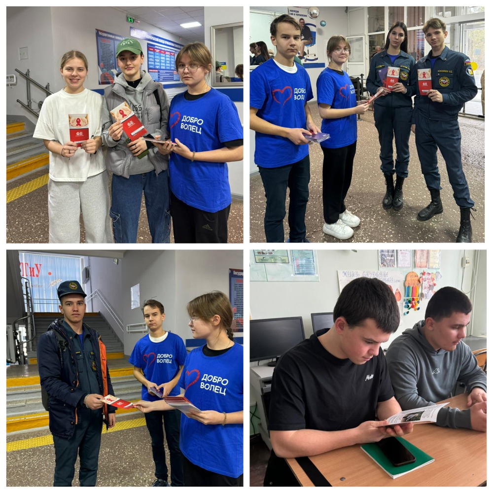 В Новочеркасском колледже промышленных технологий и управления в рамках всемирного дня борьбы со СПИДом волонтёры и руководитель волонтёрского движения «Единство» Елена Лукина провели акцию «Сохрани здоровье: шаги к профилактике ВИЧ». В ходе мероприятия волонтёры активно раздавали буклеты и листовки, а также проводили разъяснительные беседы со студентами и преподавателями колледжа.
