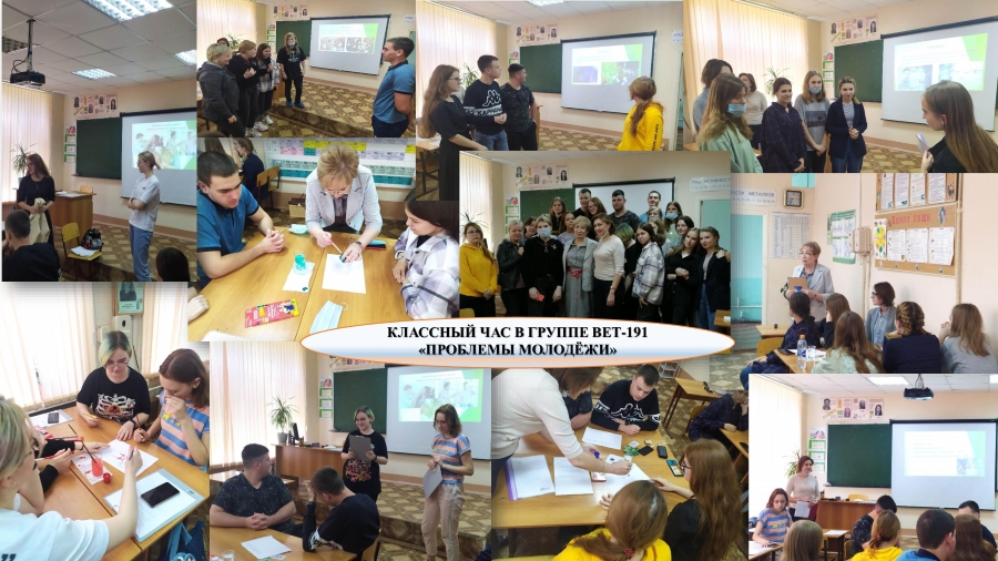 Проблемы, волнующие современную молодёжь,а также пути их решенияобсуждалистуденты Агротехнического отделениягруппы Вет-191 под руководством классного руководителя группы Доценко Е. М. и психолога Киринской А. В. на классном часе,состоявшемся 20мая 2021года.