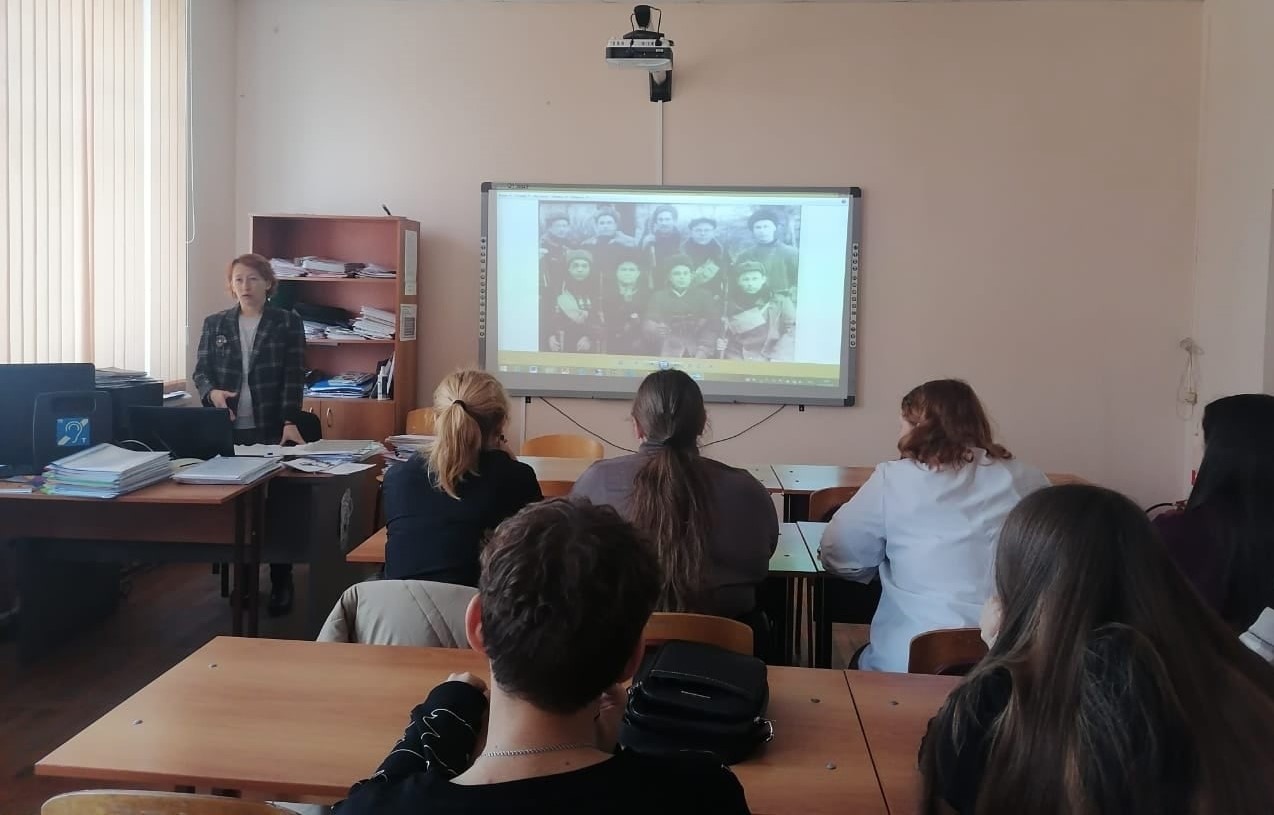 В гости к первокурсникам пригласили члена союза журналистов России Жанну Гридасову. Она рассказала ребятам о судьбах детей войны на примере жизни инженера-строителя, педагога, заслуженного учителя школы РСФСР, художника, краеведа, преподавателя НКПТиУ Владимира Репникова.