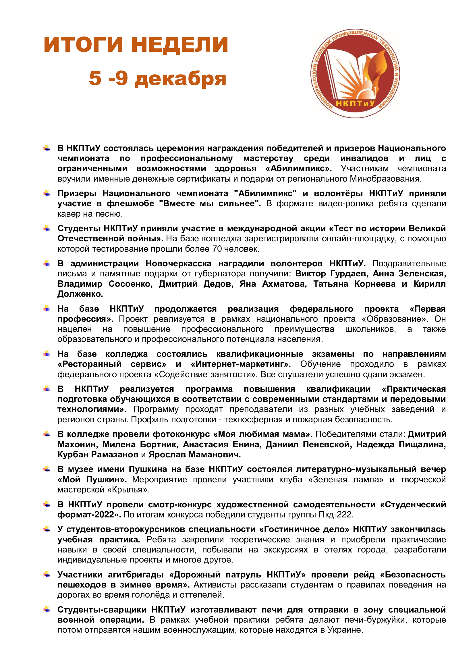 09.12.2022 ИТОГИ НЕДЕЛИ