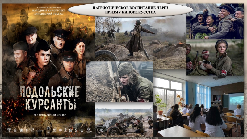 Одним из таких явился фильм «Подольские курсанты», показ которого был осуществлён 08 февраля 2021 года в группе Вет-192 Агротехнического отделения (классный руководитель Кривошеева О.Н.). Военная драмаповествует о подвиге подольских курсантов в октябре 1941 года под Москвой. Данная картина содержит огромную информативную базу о событиях 41-го года, а также несёт большой душевный потенциал и эмоционально-окрашенную память о героизме людей трагического времени в истории нашей страны.