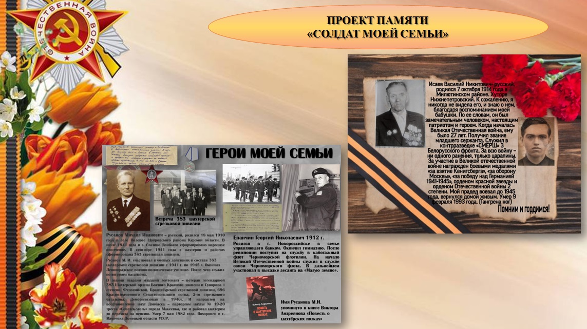 ПРОЕКТ ПАМЯТИ «СОЛДАТ МОЕЙ СЕМЬИ»