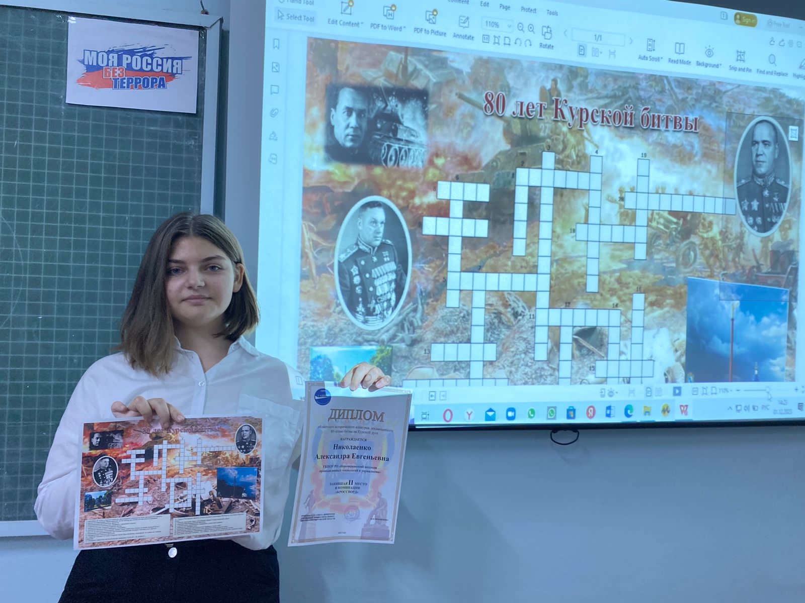 Эта битва известна как один из этапов коренного перелома в Великой Отечественной войне, триумф силы духа советских людей и советского оружия. Студентка Александра Николаенко приняла участие в номинации «Кроссворд» и исследовала в этом событии различные аспекты: